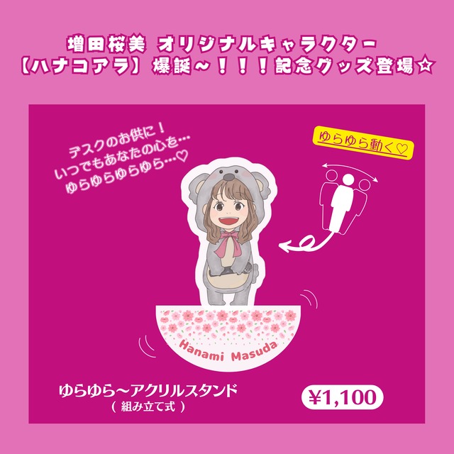 【ハナコアラ】爆誕!記念グッズ登場♡ ガチで癒し&かわいいです・:*+.\(( °ω° ))/.:+ 《ゆらゆら〜アクリルスタンド》 ◆商品説明◆ お仕事デスクのお供に! ハナコアラが、ゆらゆら〜しながら癒します!( ˃̶͈̀ロ˂̶͈́)੭ꠥ⁾⁾♡ サイズ:7×10 cm